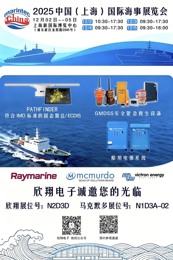 2025 年中国国际海事展将于12月2日--5日在上海新国际博览中心盛大启幕,作为专注于航海电子设备领域的深耕者,欣翔电子携多家知名品牌的核心产品重磅参展,为您呈现一场汇聚前沿技术与高品质解决方案的航海科技盛宴。