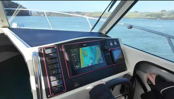 此次焕新的核心,当属船舵位置搭载的Raymarine Axiom2 Pro RVM 多功能显控单元,这也是整船电子系统的 “智慧大脑”。作为 Raymarine 的明星产品,Axiom2 Pro RVM 凭借强劲六核处理器,实现导航、雷达、声呐、发动机管理等多系统数据的无缝集成与高速响应。依托 Raymarine 专属 Lighthouse 海图,船员可精准规划航线,各类海上数据一目了然。
